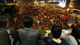 Maelfu ya watu katika eneo la Hong Kong wamejitokeza katika maandamano nje ya makao makuu ya serikali kuadhimisha mwezi mmoja wa maandamano.