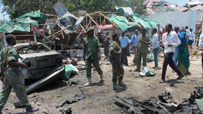 Nahodha Hassan Nor ameliambia shiriki la habari la AP kwamba mlipuaji wa kujitolea muhanga aliliendesha gari lake katikati ya kundi la watu na kujilipua.