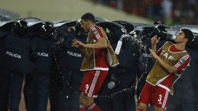 Guinea ya Ikweta inatakiwa kulipa faini ya pauni 65,000 (US$100,000) kwa vurugu zilizofanywa na Mashabiki wake na kusababisha mchezo wa nusu fainali kati yao na Ghana kusimama kwa muda.