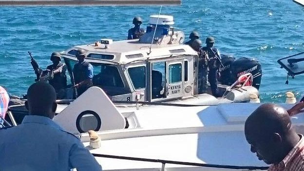 Maafisa wa usalama wanaizuilia mashua hiyo katika bandari ya Mombasa, huku wanamaji wa Kenya Navy wakishika doria katika eneo hilo.