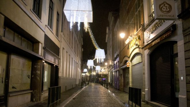 Mikahawa na maeneo ya burudani kati kati ya mji wa Brussels nchini Ubelgiji yamebakia mahame baada ya utawala kuamri maeneo yote ya umma kufungwa mapema kutokana na tishio la mashambulizi.