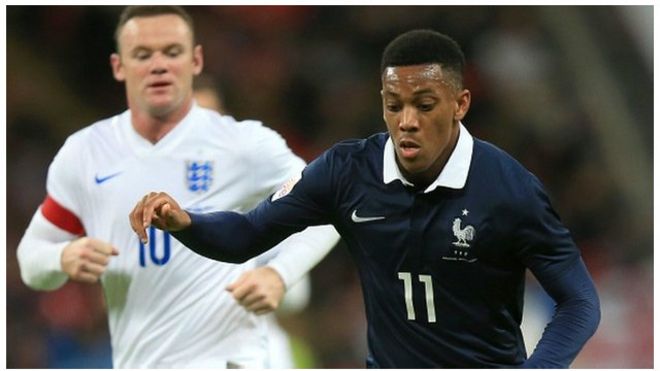 Martial mwenye umri wa miaka 19 amejeruhiwa katika mechi ya kirafiki kati ya Ufaransa na Uingereza siku ya jumaane huku Rooney akiwa anaugua.