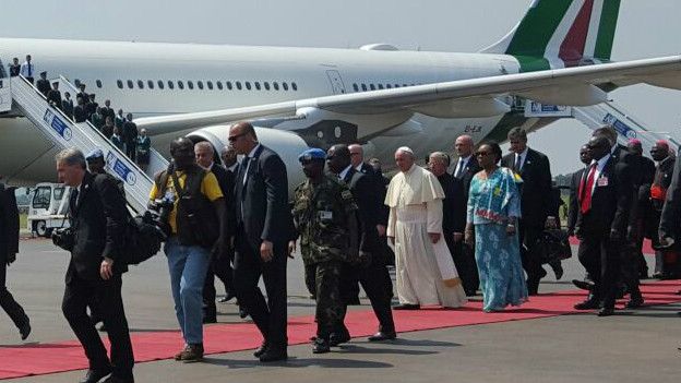 Kiongozi huyo wa kanisa katoliki duniani aliwasili mjini Bangui muda mchache uliopita na kulakiwa kwa shangwe na nderemo na maelfu ya wakatoliki.