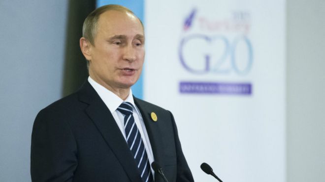 ''Suala la mapambano dhidi ya ugaidi ni moja kati ya maswala muhimu,hasa baada ya matukio mabaya kama utekaji nyara na vifo vilivyotokea nchini Ufaransa, kama tunavyoelewa na imekuwa ikizungumzwa kabla, kuwa njia za ufadhili wa fedha kwa ajili ya vitendo vya kigaidi vikomeshwe,nimetoa mifano kwa taarifa tulizonazo kuhusu watu kutoka nchi mbalimbali wanaotoa ufadhili kwa wanamgambo wa IS, tumebaini kuwa ufadhili huu unatoka nchi 40 zikiwemo baadhi za G20''. Alieleza Putin.