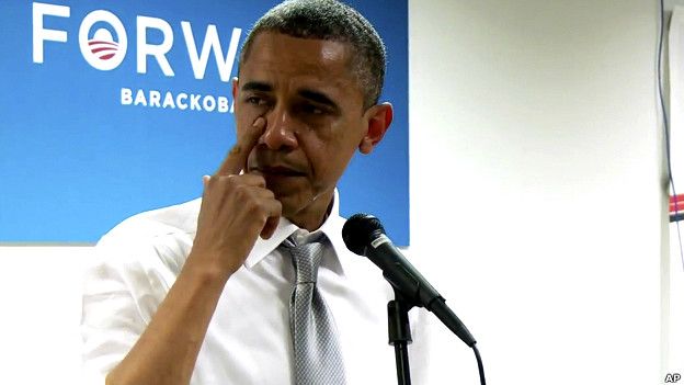 Alizidiwa na hisia alipokuwa akisimulia kuhusu shambulio la ufyatuaji risasi katika shule ya msingi ya Sandy Hook mwaka 2012 ambapo watoto 20 na watu wazima sita.