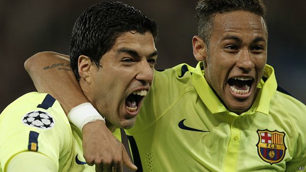 Washambuliaji wa Barcelona Lionel Messi,Suarez na Neymar wamefunga mabao 91 kati yao msimu huu huku Suarez akifunga mabao 41.