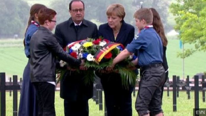 Sherehe hizo zilianza na hotuba kutoka kwa kansela wa Ujerumani Angela Merkel pamoja na mwenyeji wake wa Ufaransa, Francois Hollande.
