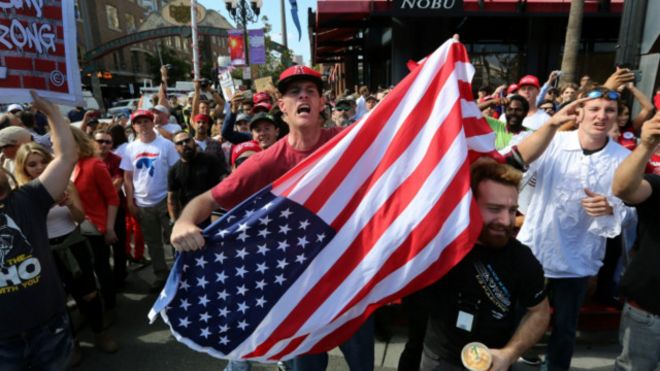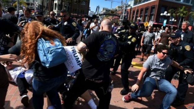 Polisi wa kukabiliana na ghasia nchini Marekani walitumwa kwenye mji wa San Diego, jimbo la California, kuzuia makabiliano kati ya maelfu ya wafuasi na wanaompinga mgombea wa urais kwa tiketi ya chama cha Republican Donald Trump.